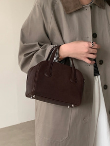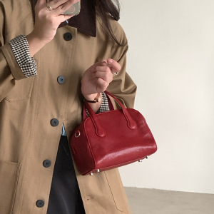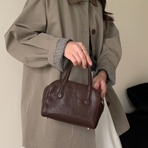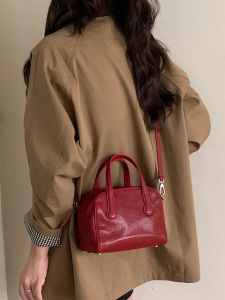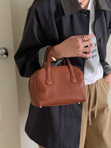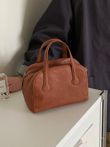 真皮保龄球包2025新款小众高级感复古手拎波士顿牛皮女包斜挎小包