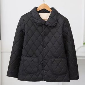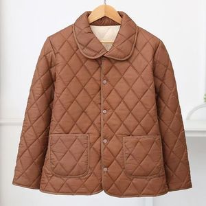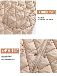 加厚保暖棉衣女娃娃领尼丝纺长袖外套冬季新款菱形格子加绒妈妈棉