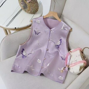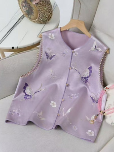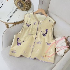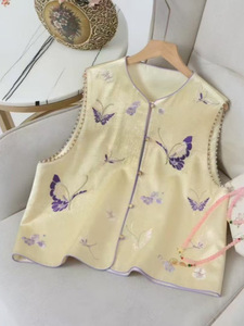 批发新中式马甲女气质百搭国风袖口珠边刺绣背心坎肩上衣无袖外套