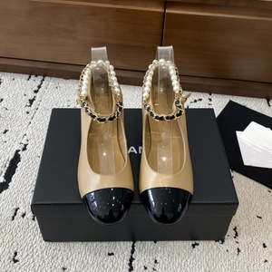对版春秋新款拼色珍珠链条小香风玛丽珍鞋女一字带花朵仙女风单鞋