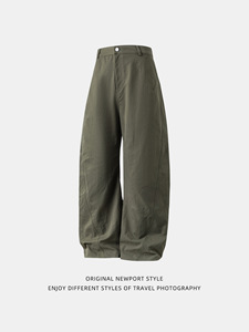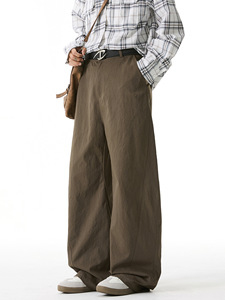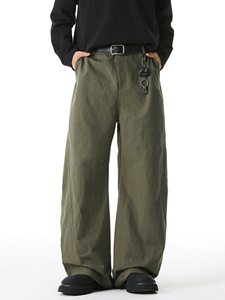 侧边分割拼接直筒休闲裤男秋季款潮牌复古质感宽松廓形打褶长裤子