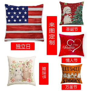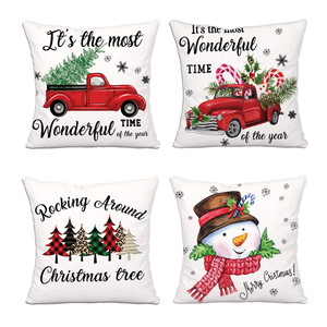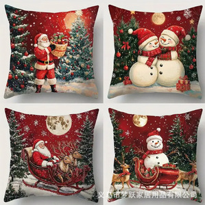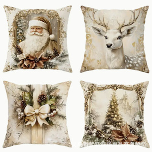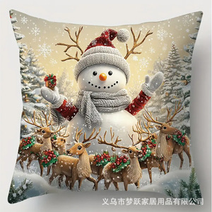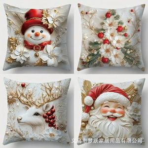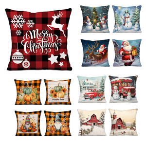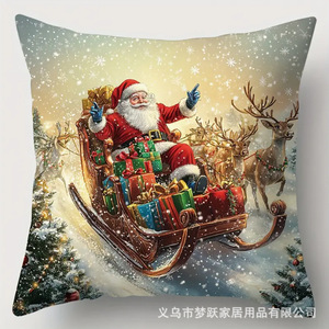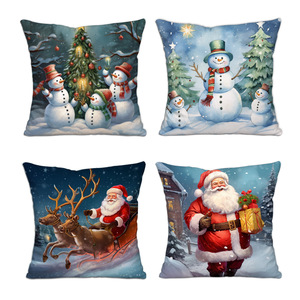 圣诞节抱枕套厂家批发靠垫印花抱枕套跨境节日家居装饰沙发靠枕套