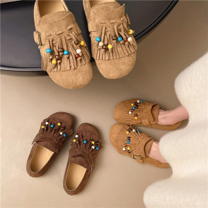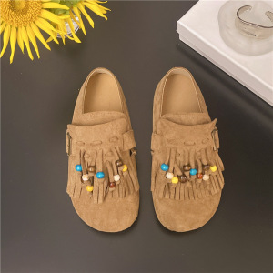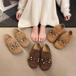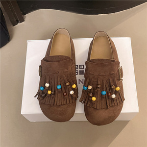 复古串珠流苏全包勃肯鞋女2025新款秋季软底不累脚袋鼠鞋休闲单鞋