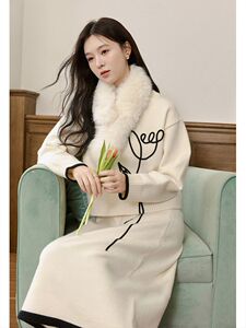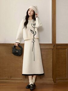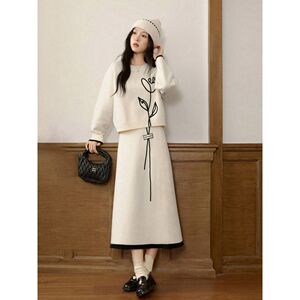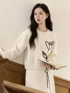 「花园早茶」气质时尚套装女2025秋冬新款立体玫瑰毛衣半裙两件套
