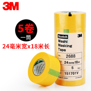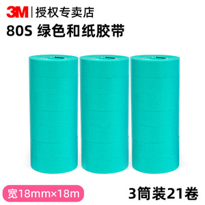 3M汽车喷漆遮蔽和纸胶带耐高温不渗透不残胶彩色美纹纸强粘性18mm