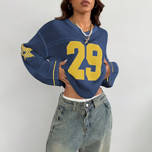 曼加2025跨境欧美新款时尚休闲街头潮流数字印花V领长袖针织毛衣