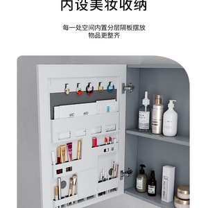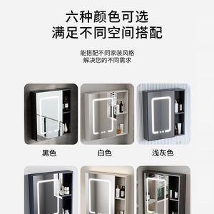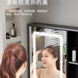 免打孔太空铝浴室镜柜单独挂墙带灯除雾卫生间化妆镜子置物收纳架