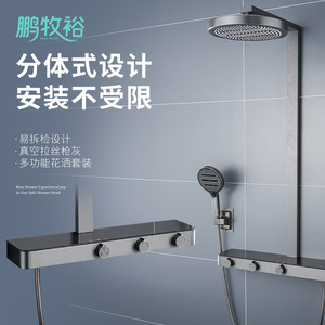 全铜大置物台淋浴花洒套装家用卫生间枪灰色多功能花洒淋浴套装