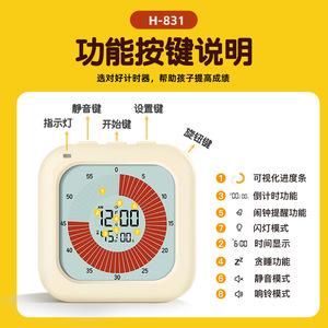 可视化计时器可循环学生学习自律打卡器厨房健身定时器时钟闹钟