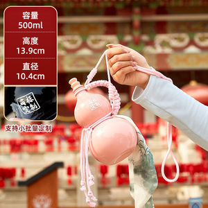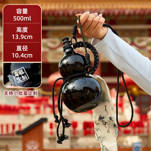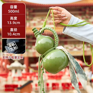 葫芦酒瓶景区文创 500ml高颜值网红仿瓷手提绳奶茶瓶复古仿瓷酒壶