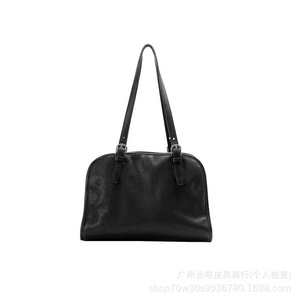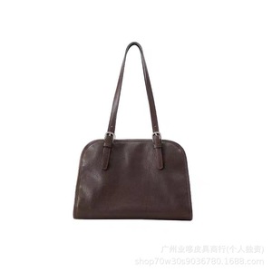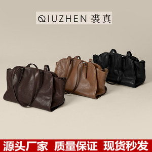 裘真植鞣头层牛皮元宝保龄球复古真皮大手提斜挎包大容量通勤包女