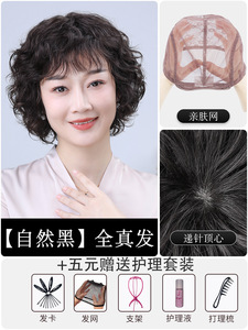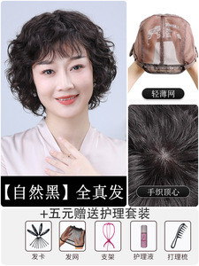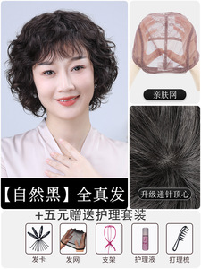 假发真发全真人发中老年短卷发假发套妈妈全头套女士自然真头发