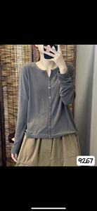爆款圆领日系风打底衫文艺清新单排扣长袖休闲宽松小衫百搭神器