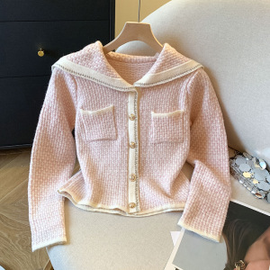 甜美海军领针织衫2025秋季新款小香风设计感毛衣开衫外套气质上衣
