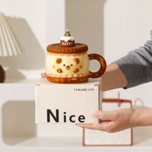 少女心生日礼物陶瓷杯卡通动物蛋糕水杯送男女朋友高颜值礼品杯子