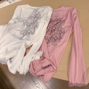 2025早秋女装新款时尚洋气梵文十字架包胸长袖修身打底衫T恤上衣
