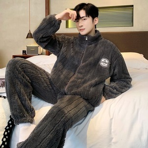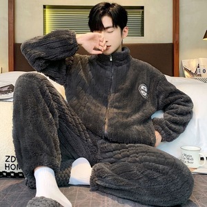 长裤男士家居服睡衣男珊瑚绒时尚保暖法兰绒秋冬款少年男士家居服