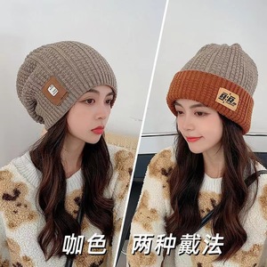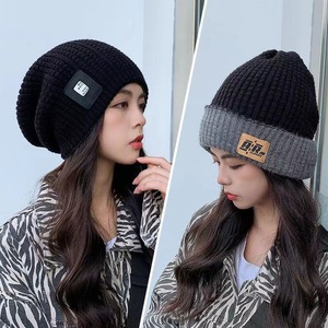 秋冬韩版大头围水桶帽保暖盆帽显脸小潮帽子黑色针织毛绒堆堆帽女