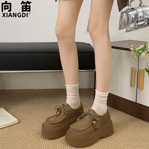 牛皮全包勃肯鞋子女袋鼠鞋2025秋季新款松糕厚底增高女鞋乐福单鞋