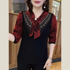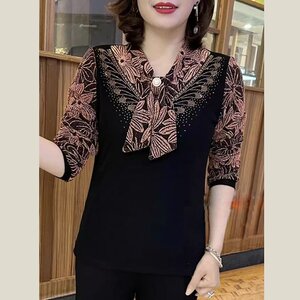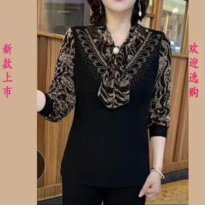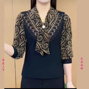 一件代发2025秋季新款时尚百搭气质通勤宽松显瘦拼色飘带长袖上衣
