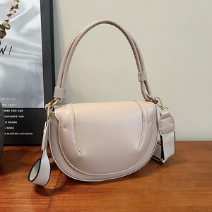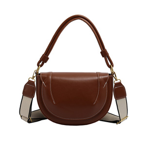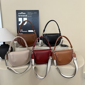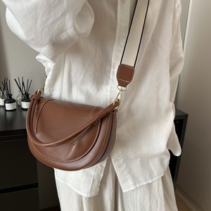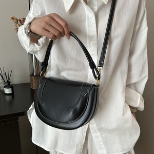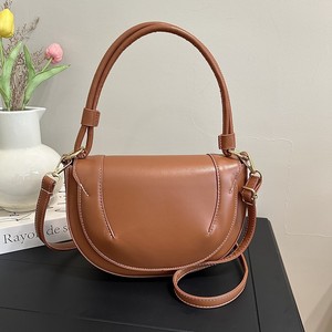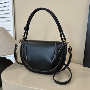 跨境新款斜挎包女2025新品大容量马鞍包纯色缉线饰手提翻盖通勤包