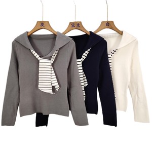2025秋季新款修身百搭长袖T恤女海军领飘带撞色条纹假两件上衣