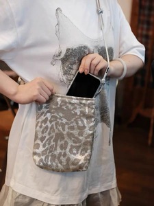 2025夏日新款小众银色豹纹可调节水桶包时尚百搭单肩斜挎手机包