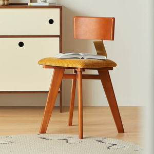 中古餐椅灯芯绒北欧实木靠背餐桌椅侘寂风凳子设计师高级感法式复