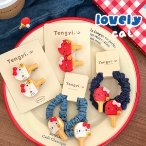 趣味卡通小猫乒乓球拍发绳发夹少女心百搭马尾发饰可爱刘海夹边夹