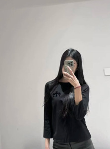 高版本~25Ass新款潮牌CH克罗伈圆领百搭上衣七分袖T恤女打底衫