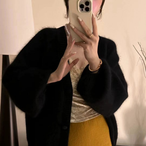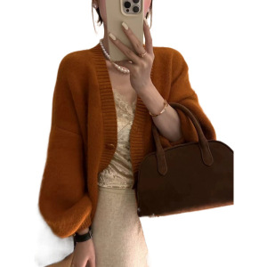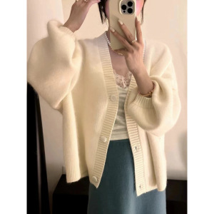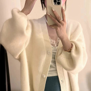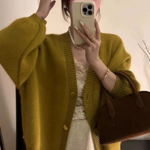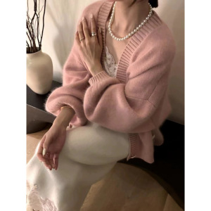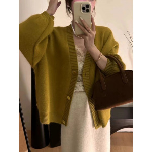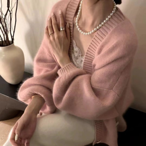 韩系复古慵懒风感针织开衫女春季新款宽松休闲百搭毛衣外套