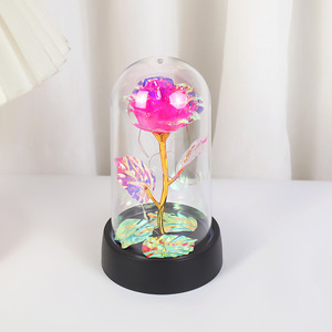 跨境热销三叶彩金玫瑰花亚克力罩小夜灯七夕节母亲节教师节礼物