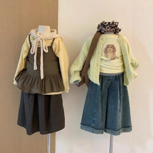 女童套装春秋装2025新款儿童毛衣外套牛仔阔腿裤三件套女孩针织衫