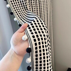 新款高级中古风黑白雪尼尔编织纹窗帘布卧室客厅遮光设计师款极简