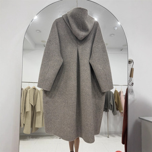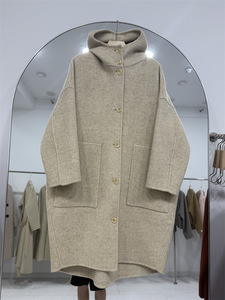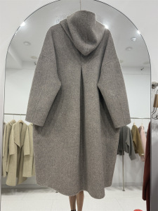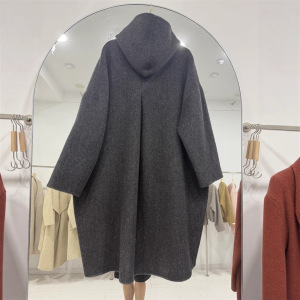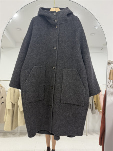欧洲站宽松大码女装双面呢羊毛大衣减龄连帽宽松休闲毛呢外套女