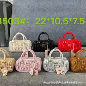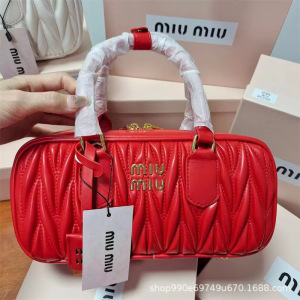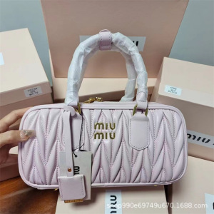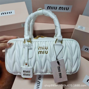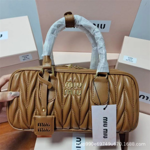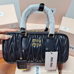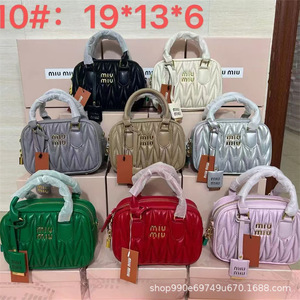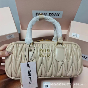 miu同款保龄球褶皱包时尚百搭小羊皮单肩斜挎经典女包高级感复古