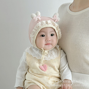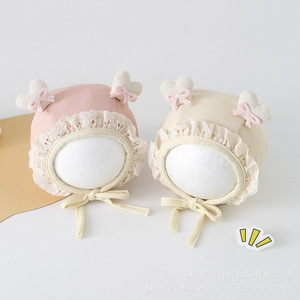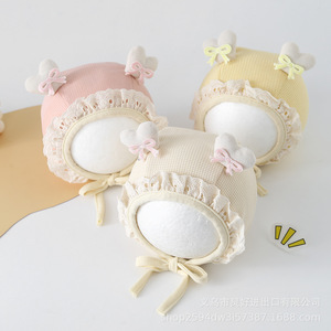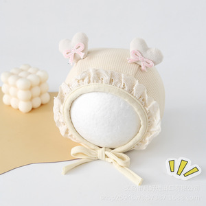 婴儿帽子春秋季可爱蝴蝶结护囱门公主帽女宝宝小月龄囟门包头帽冬