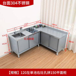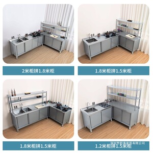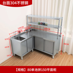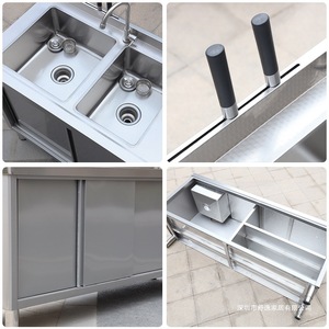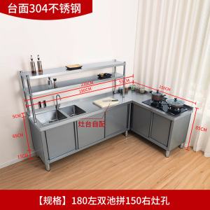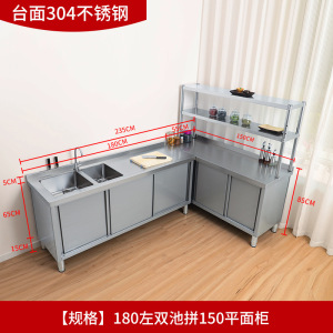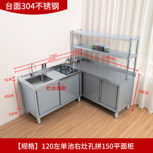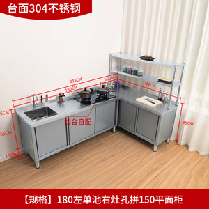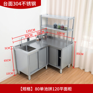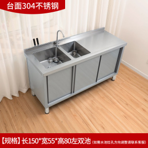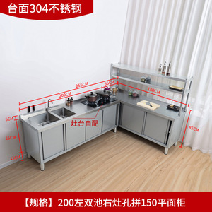 304不锈钢水池水槽操作台工作台一体储物洗菜盆灶台橱柜家用商用