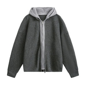 假两件开衫连帽毛衣男秋冬新款仿鹿毛绒潮牌复古慵懒风针织衫外套