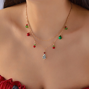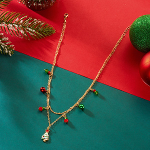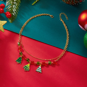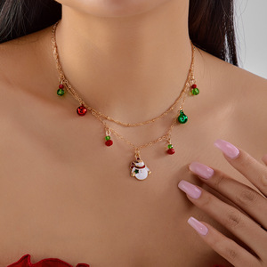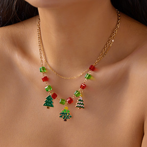 欧美跨境爆款圣诞节项链合金滴油圣诞元素雪人圣诞树合金项链饰品