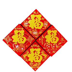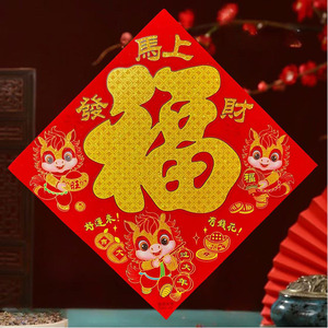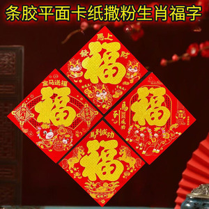 2026年马年卡纸撒粉金福字条胶平面新年门贴装饰春节用品烫金福字