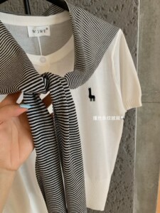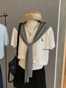 WGWE6738广州十三行女装秋装新款小个子短袖上衣针织开衫配披肩