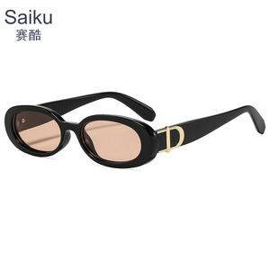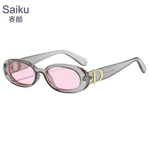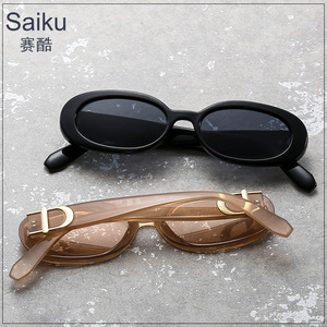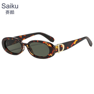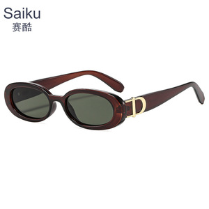 新款欧美跨境椎圆型金属配件太阳镜大脸显瘦潮流街拍墨镜女防紫外