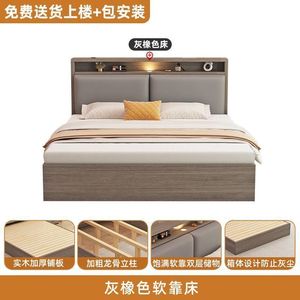 实木床现代简约双人床家用软靠箱体储物床出租房用单人卧室木床架