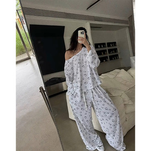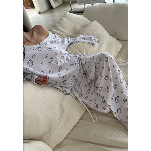 韩系可爱hellokitty斜肩睡衣女春秋款宽松舒适可外穿家居服两件套