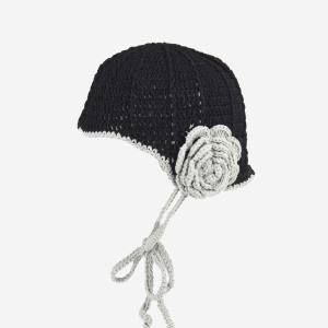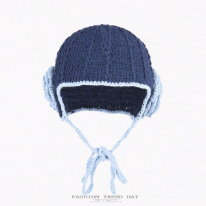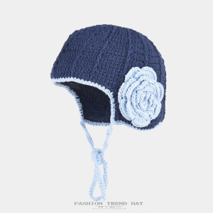 韩系复古手工编织花朵针织帽子女秋冬保暖护耳绑带包头钩针毛线帽