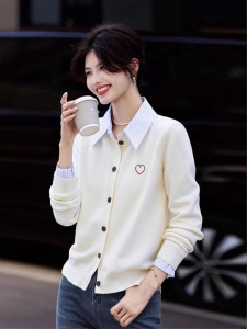 哥家商场同款女装2025秋冬新款女拼接领减龄休闲V领温柔百搭长袖