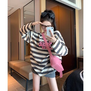 0693#条纹双纱230G卫衣2025秋季新款薄款圆领长袖t恤上衣韩版女装