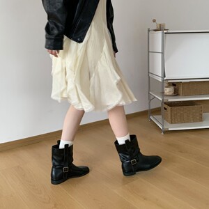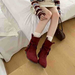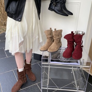 褶皱堆堆靴子女2025新款韩版小众美拉德长筒靴西部牛仔靴骑士靴