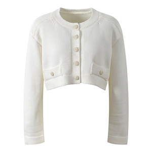 2025秋季新款法式名媛小香风短款单排扣圆领纯色针织开衫外套上衣